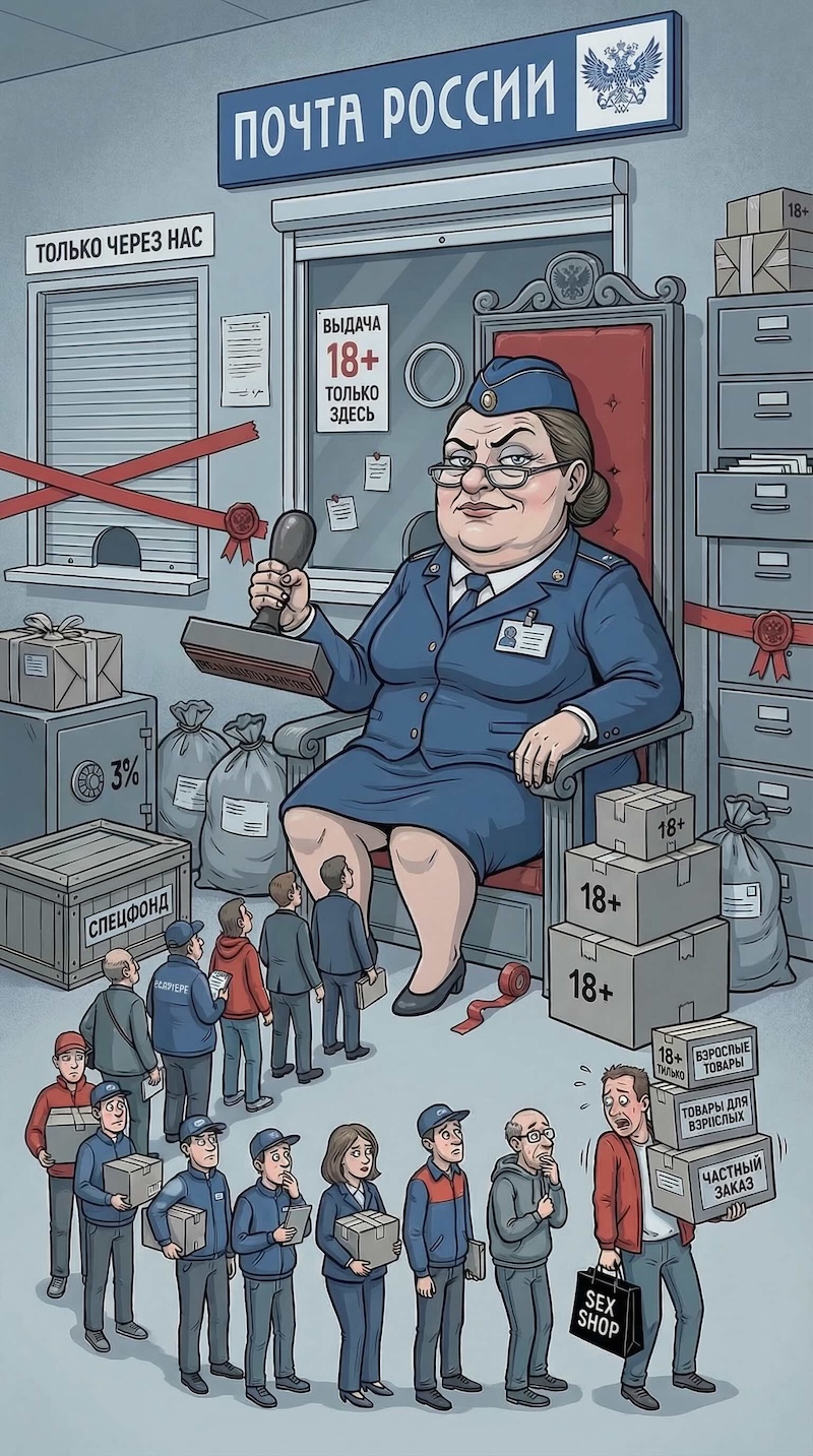 Есть и второй возможный мотив: поддержка доходной базы «Почты России». Максут Шадаев прямо говорил, что Минцифры готовит законопроект, который должен дать «Почте России» стабильные источники дохода, потому что маркетплейсы и альтернативные службы доставки забрали у неё наиболее прибыльные сегменты. Если это так, то товары 18+ могли попасть в проект как ещё один регулируемый сегмент, который можно закрепить за госоператором.